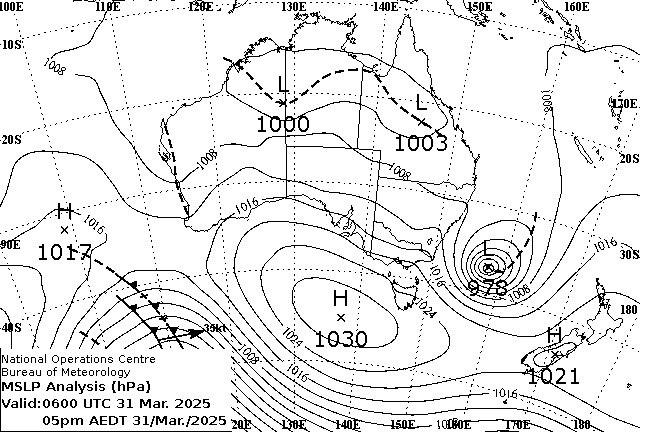Observations and extremes for Monday 31 MAR 2025