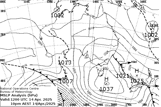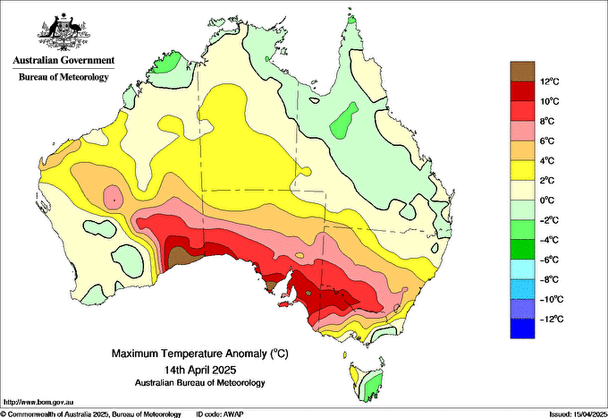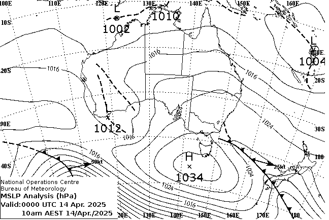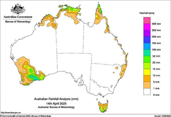 Observations and extremes for Monday 14 APR 2025