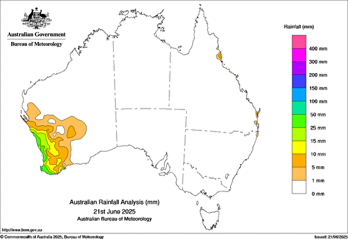 includes the top 5 totals nationally followed by all reported falls of 50mm or more. |