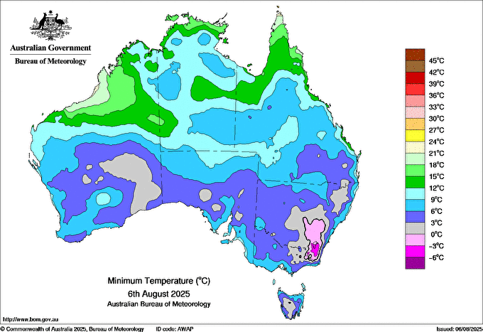 | Coldest for Wednesday 06 AUG 2025 |